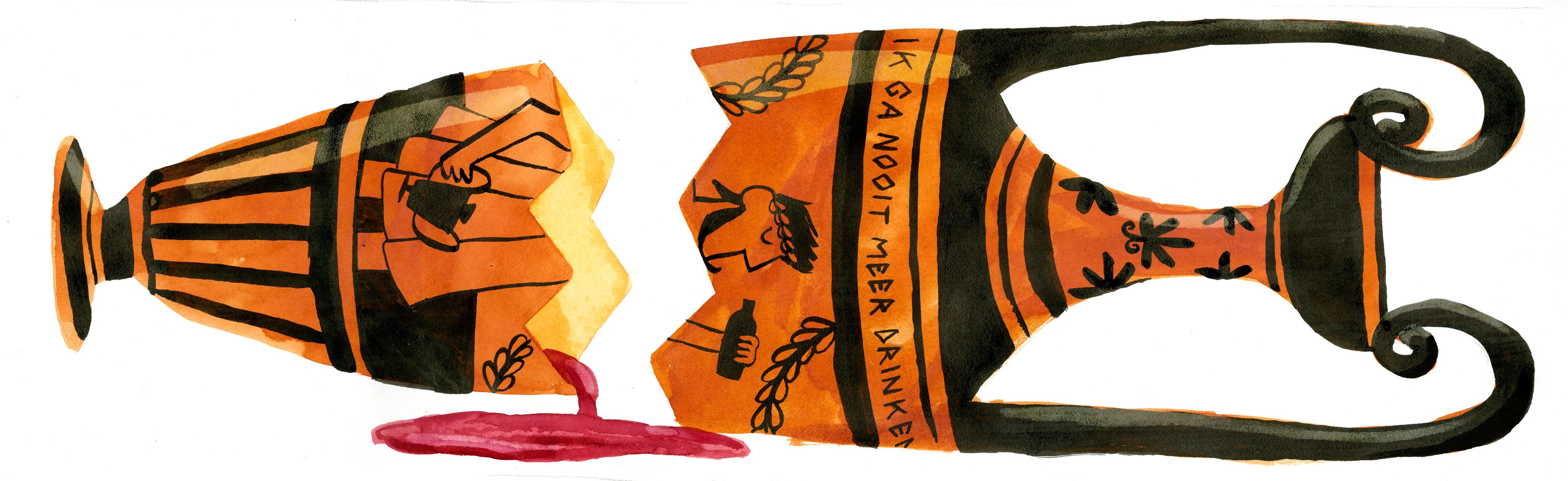 Illustratie bij een essay in NRC Handelsblad over non-alcoholische drank en onze contractbreuk met Dionysus