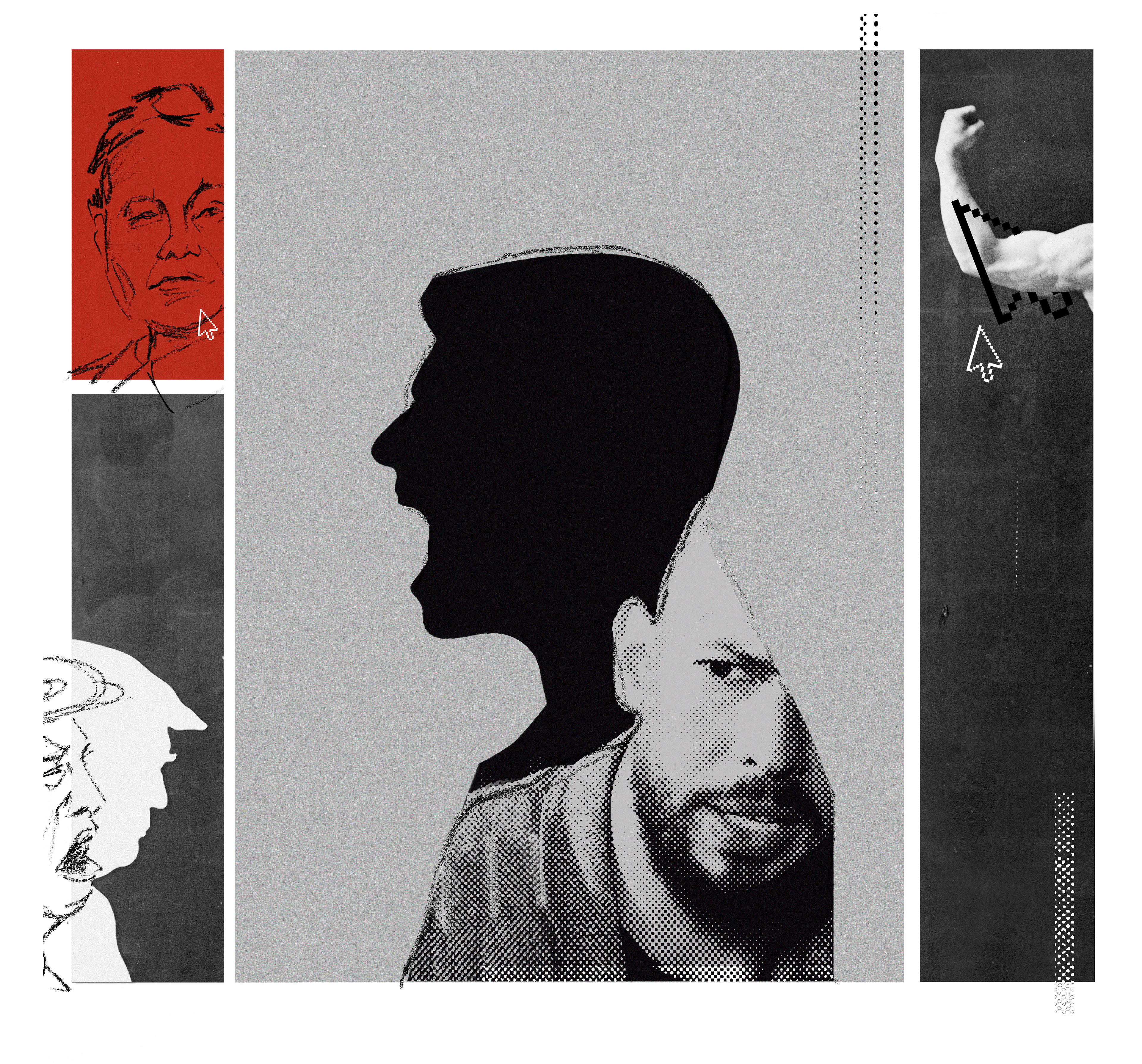 In samenwerking met Lynne Brouwer maakte ik de portretten van Trump en Musk voor een collage over de manosphere en radicaal-rechts in NRC Handelsblad.