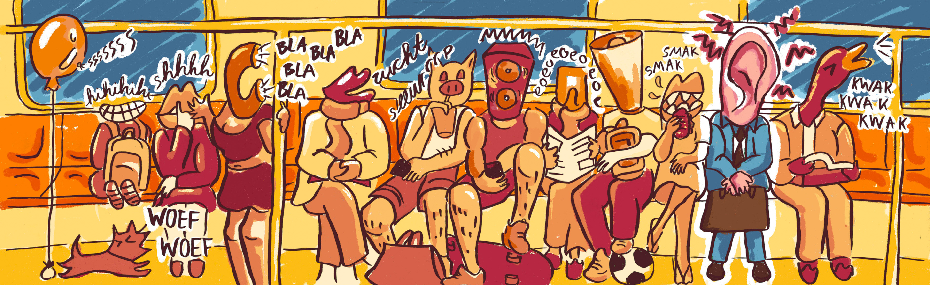 "Je bent niet hooggevoelig, de wereld maakt gewoon een teringherrie" luidt het essay van Arjen van Veelen. Ik illustreerde deze metroscène voor NRC Handelsblad.