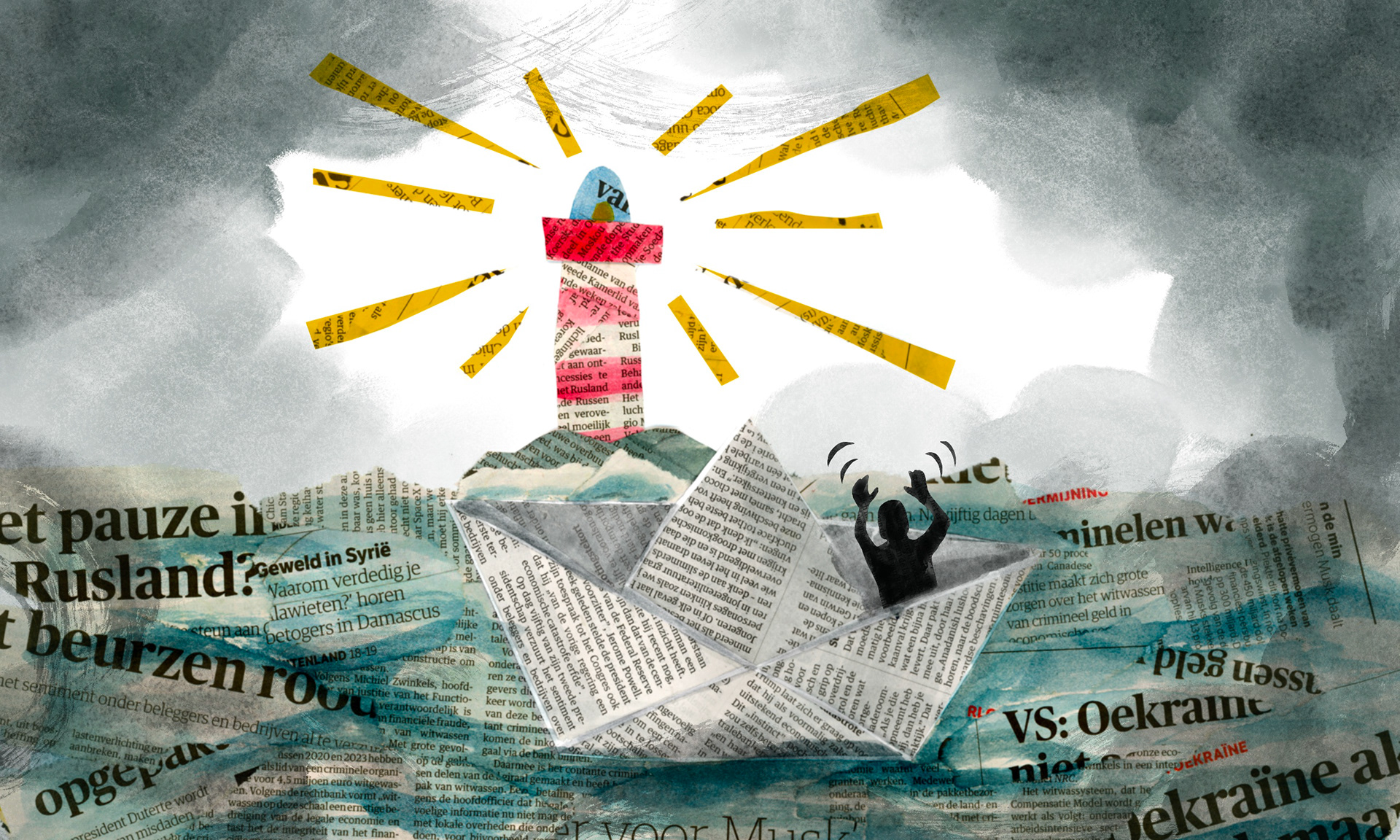 Hoe ga je om met de stortvloed aan negatief nieuws die we dagelijks consumeren? Ik maakte deze illustraties bij de Slecht Nieuws Gids van NRC Handelsblad.