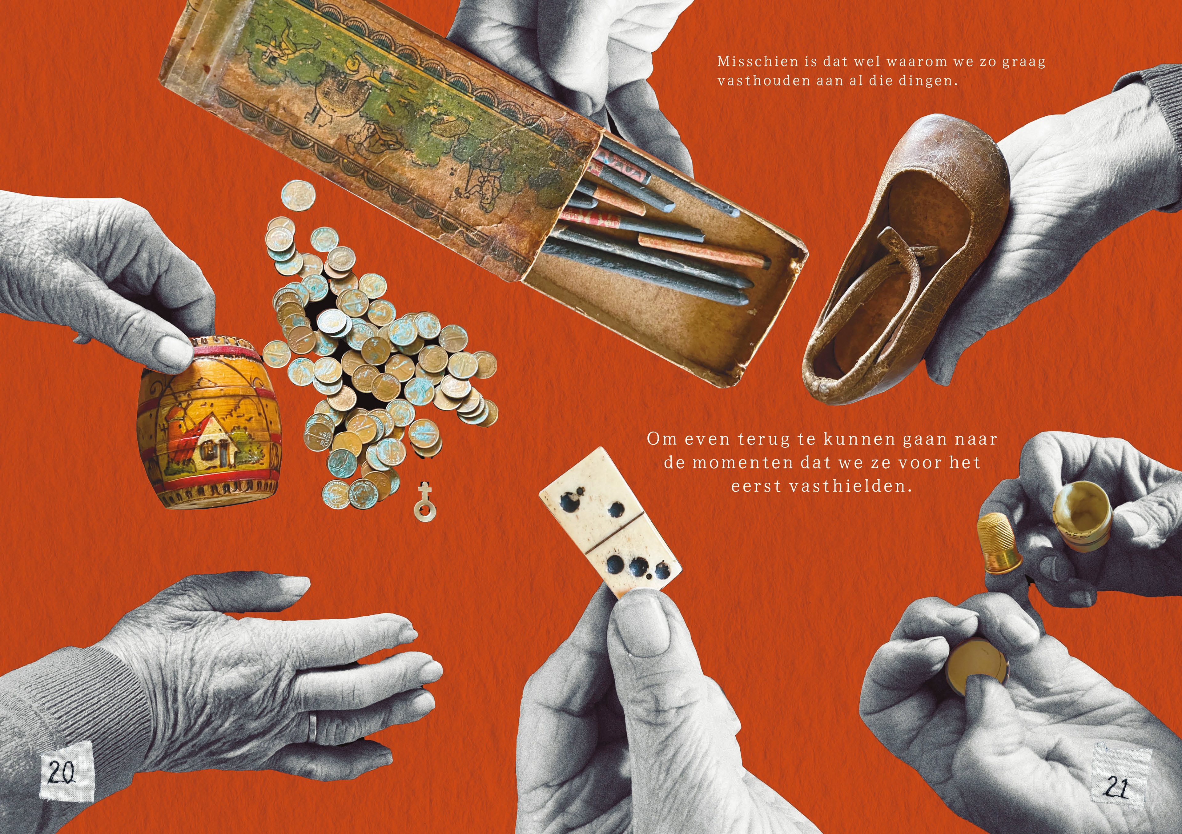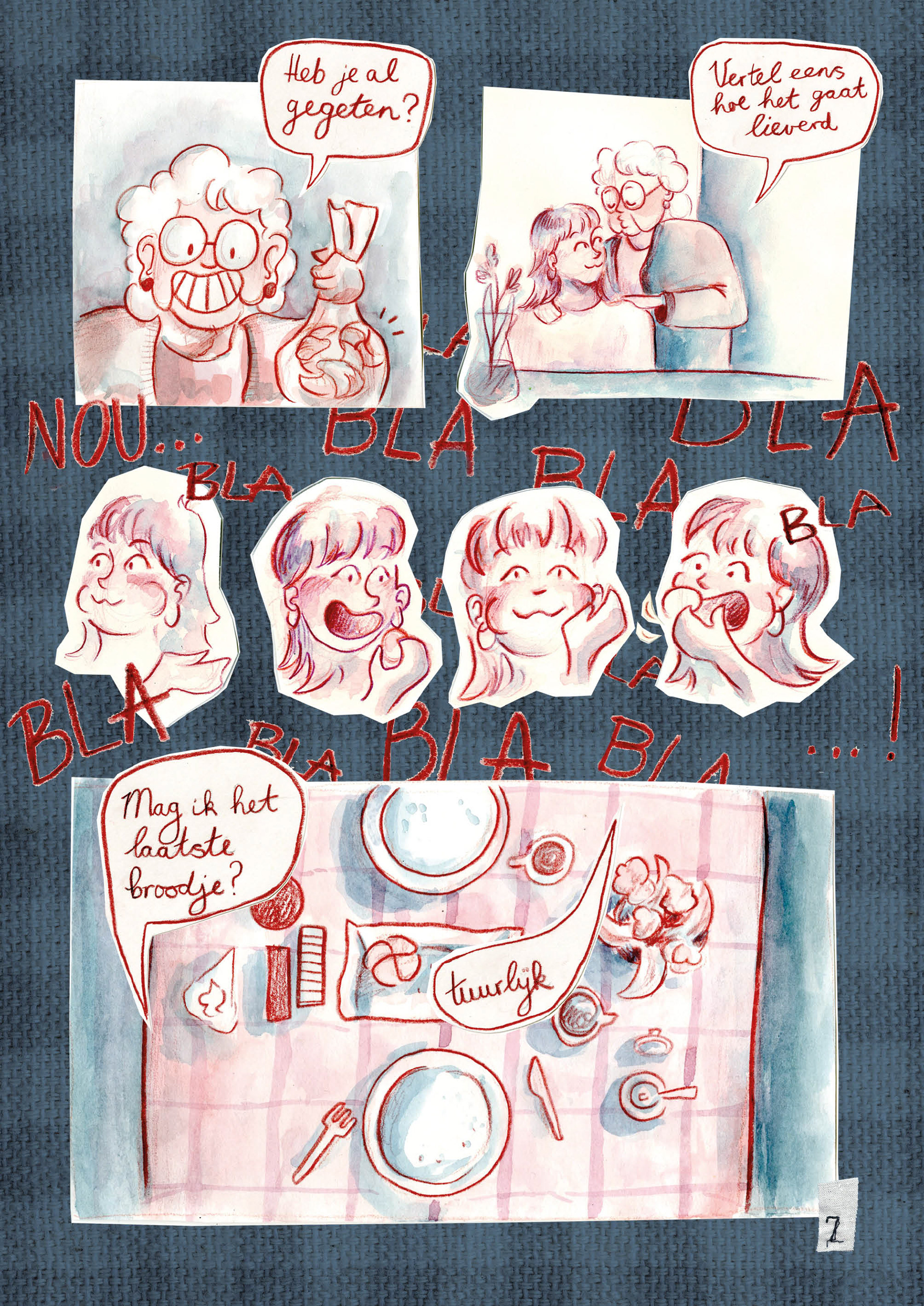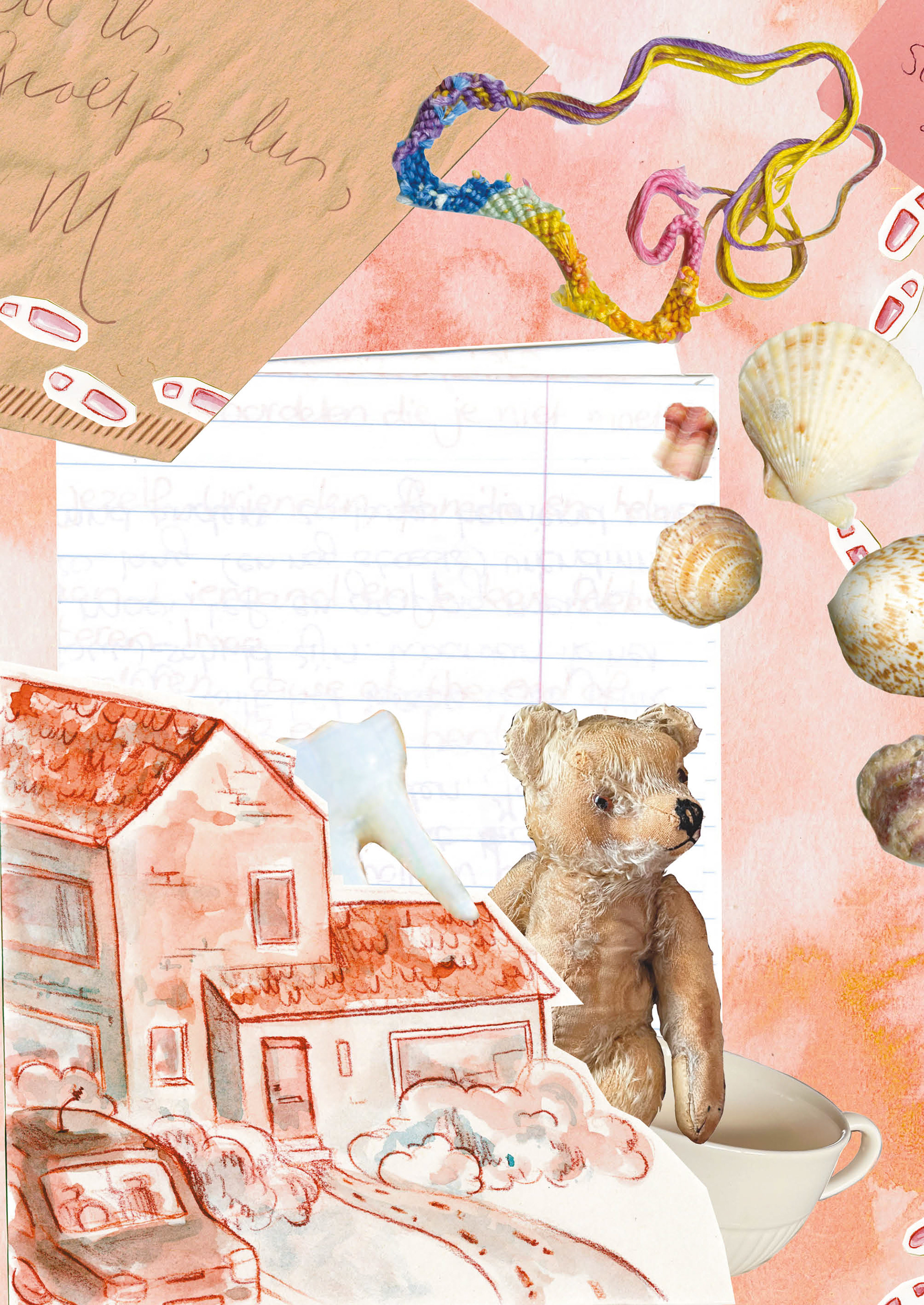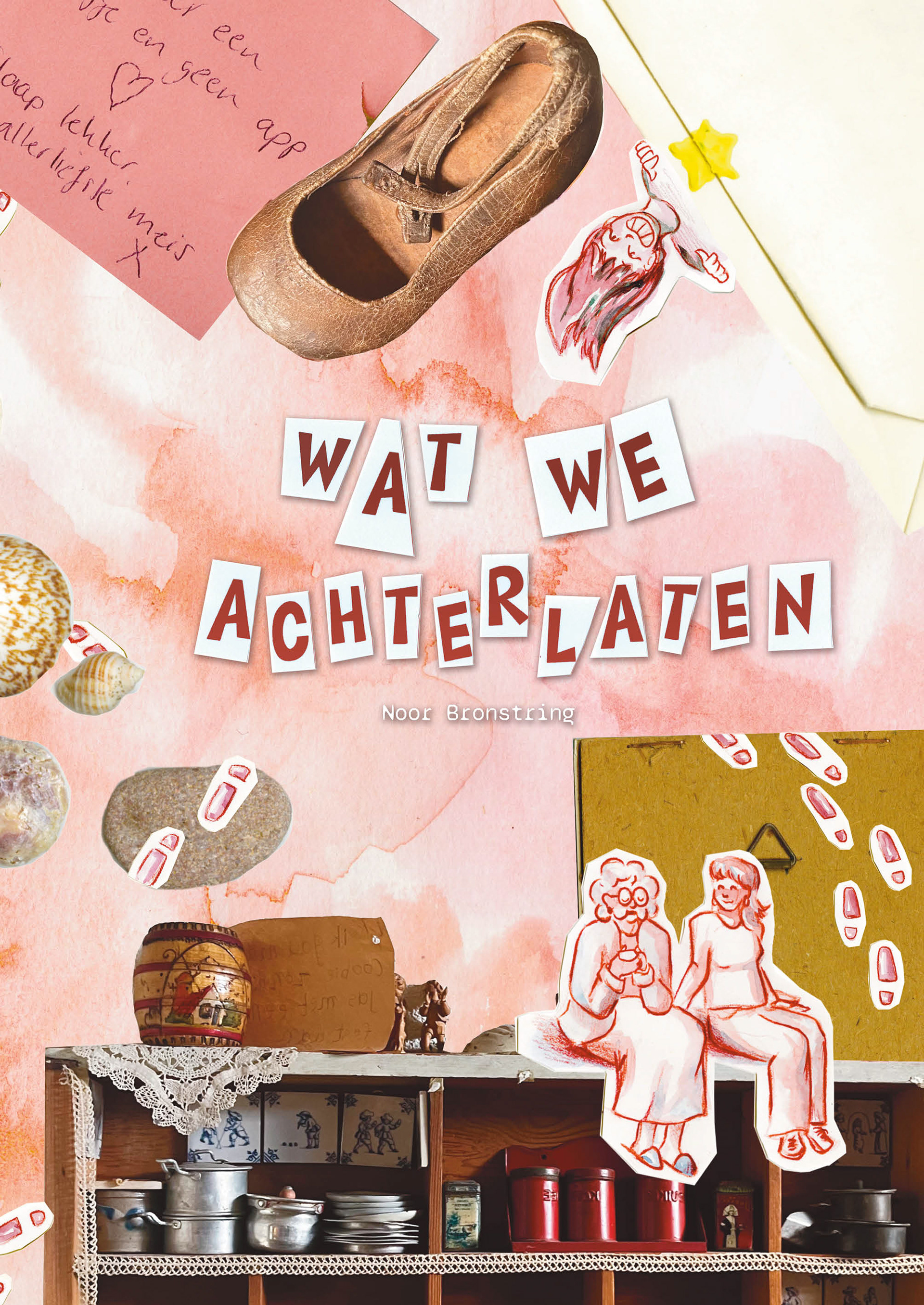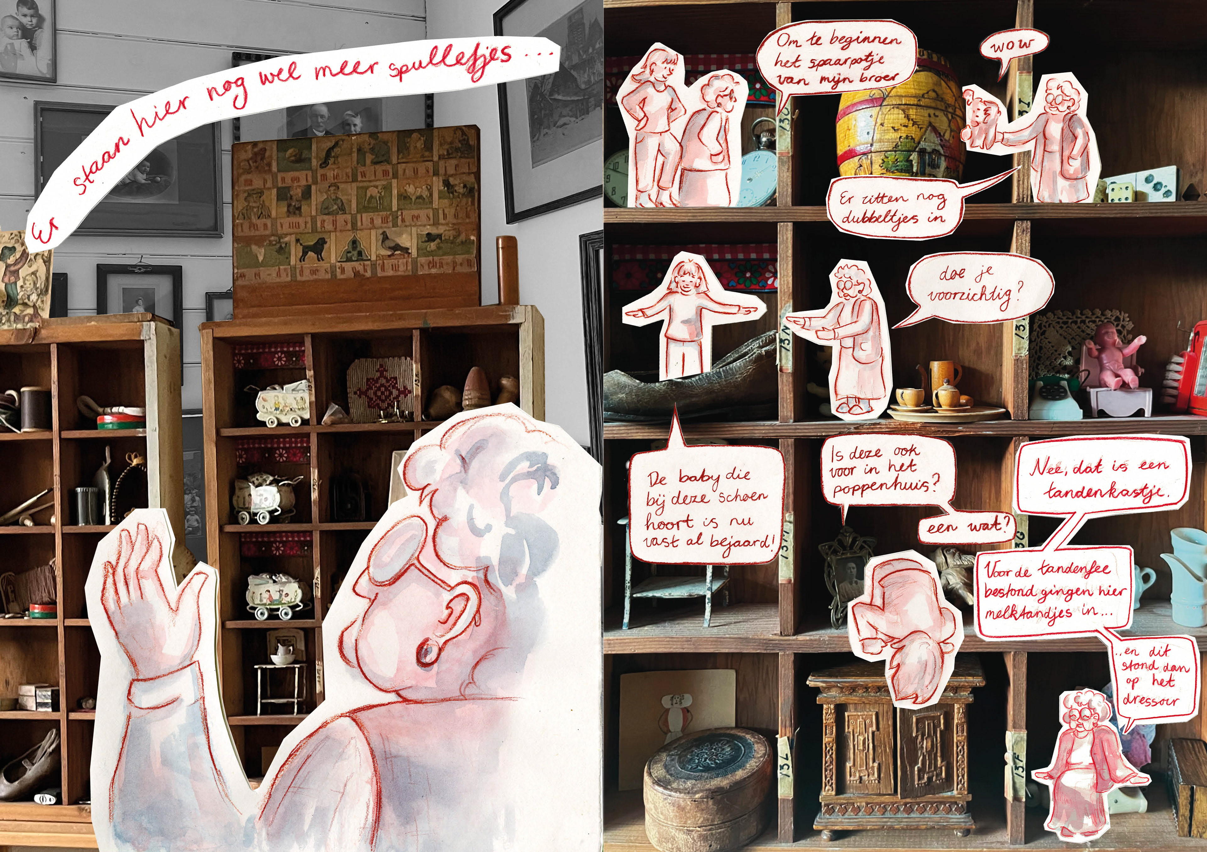 'Wat we achterlaten' is een graphic novel over het bewaren van voorwerpen en de herinneringen die ze vasthouden. Het is een lopend project, bestaand uit zowel tekeningen als collagewerk.